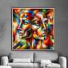 Esta pintura abstrata evoca uma sensação de harmonia e movimento através de suas formas entrelaçadas e suas cores suaves, mas contrastantes. As figuras geométricas, com suas curvas e ângulos, parecem dançar em uma sinfonia visual que guia o olhar do observador por todo o quadro. A paleta de cores, que varia de tons terrosos a brancos e cinzas, cria um equilíbrio sereno e uma profundidade que atrai o observador para explorar os detalhes mais sutis da obra. Os contornos suaves e as formas fluídas sugerem uma interação entre o espaço e a forma, como se as figuras estivessem se moldando umas às outras em uma dança contínua. Esta obra não apenas desafia a percepção convencional da forma e do espaço, mas também convida o espectador a uma interpretação pessoal e emocional, tornando-se uma peça envolvente e contemplativa.