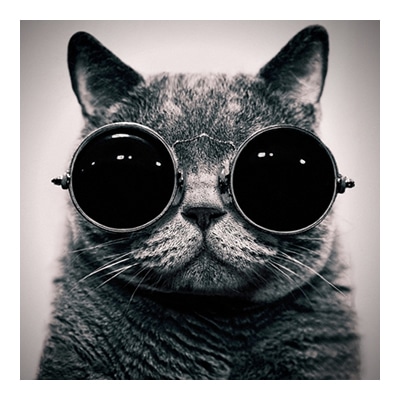 Esta parece ser a imagem perfeita para criar um clima enigmático. O grande plano geral que mostra um gato com óculos é um contraste suave entre tons de branco e preto, o que o torna intangível e singular. A mistura de técnicas de computação gráfica cria um resultado moderno, impactante e único.