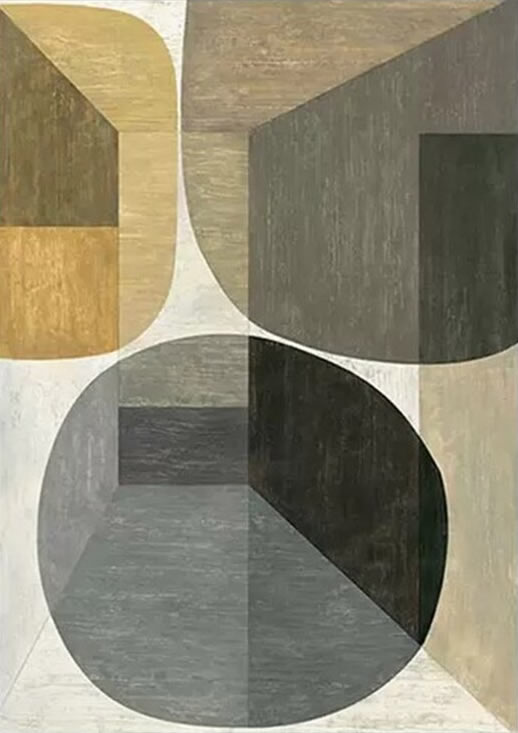 Uma obra prima do art déco e do cubismo geométrico. Esta arte possui uma variedade de formas geométricas que se encontram em beleza e harmonia, criando um olhar contemporâneo e interessante. O desenho meticuloso e bem pensado capta a atenção de quem o observa, enquanto as cores constroem um equilíbrio em termos de composição. O movimento e o uso de diferentes ângulos definem o tom da obra, tornando-a ao mesmo tempo moderna e clássica.