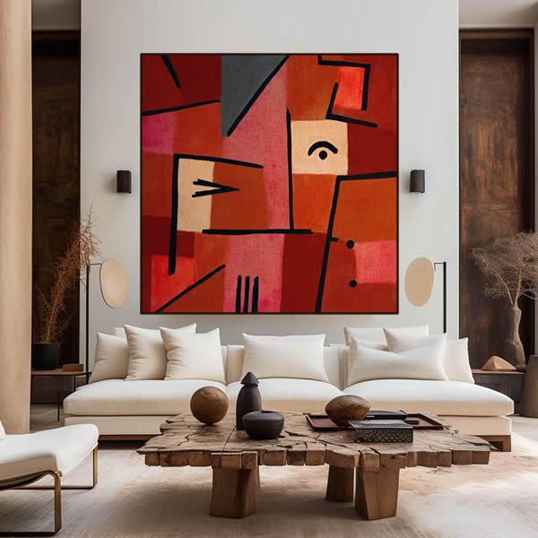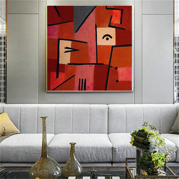 Esta pintura abstrata cativa o olhar com sua composição vibrante e audaciosa, onde formas geométricas e cores intensas coexistem em um equilíbrio instigante. Dominada por tons de vermelho, a obra evoca uma sensação de dinamismo e movimento, apesar de sua aparente simplicidade. O uso estratégico de linhas negras delineia e separa as cores, enquanto um único “olho” posicionado quase centralmente na composição parece observar o espectador, adicionando um elemento de vida e introspecção à abstração. A complexidade da obra se revela na maneira como as formas se sobrepõem e interagem, sugerindo profundidade e perspectiva onde não há representação realista. A pintura pode ser interpretada como uma metáfora visual para a experiência humana — complexa, multifacetada e aberta a múltiplas interpretações. Ela não apenas decorre das tradições da arte abstrata, mas também dialoga com elas, oferecendo uma nova perspectiva sobre o uso de formas e cores na expressão artística.