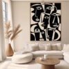 Esta pintura abstrata evoca uma sensação de harmonia e movimento através de suas formas entrelaçadas e suas cores suaves, mas contrastantes. As figuras geométricas, com suas curvas e ângulos, parecem dançar em uma sinfonia visual que guia o olhar do observador por todo o quadro. A paleta de cores, que varia de tons terrosos a brancos e cinzas, cria um equilíbrio sereno e uma profundidade que atrai o observador para explorar os detalhes mais sutis da obra. Os contornos suaves e as formas fluídas sugerem uma interação entre o espaço e a forma, como se as figuras estivessem se moldando umas às outras em uma dança contínua. Esta obra não apenas desafia a percepção convencional da forma e do espaço, mas também convida o espectador a uma interpretação pessoal e emocional, tornando-se uma peça envolvente e contemplativa.