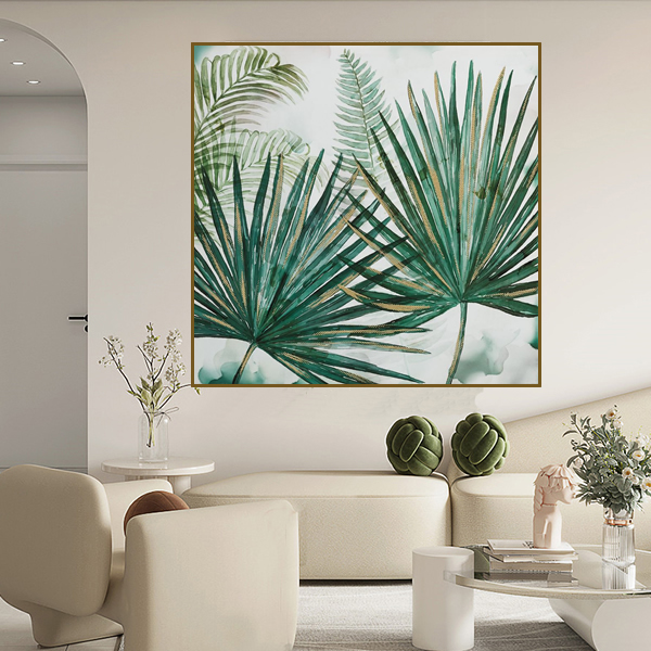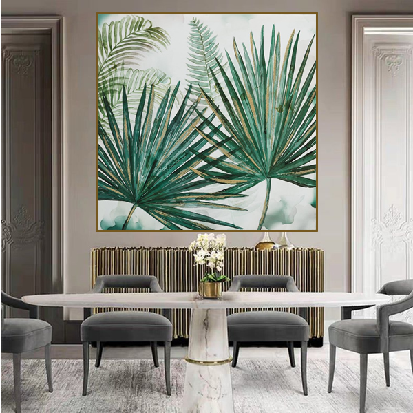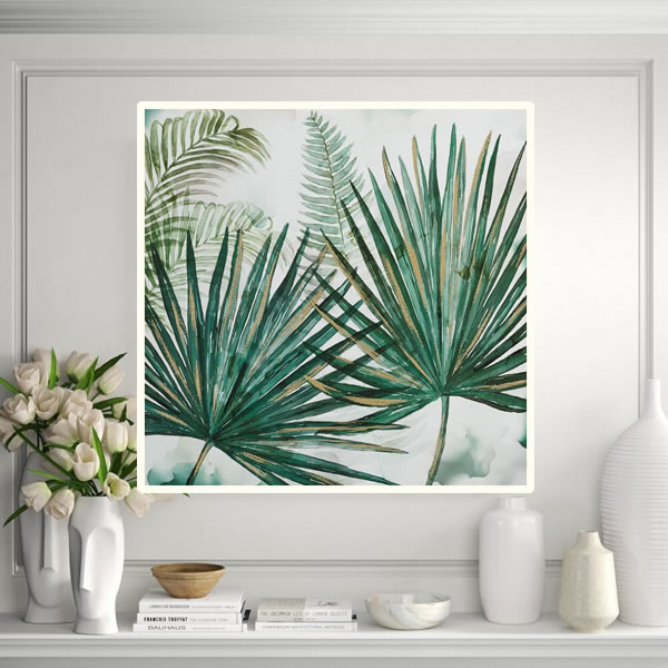 Esta pintura é uma obra-prima moderna feita com leveza e estilo. O brilho impresso pela luz e o arrefecimento desta cena tropical são tão encantadores que não pode resistir. Feito em acrílico e aquarela, as folhas de palmeira sobre um fundo branco têm uma borda suave que nos fascina. Esta pintura é contemporânea, suave, mas cheia de energia. Esta magnífica obra de arte apresenta um estilo a água-pintura e é feita com técnicas de acrílico e de pintor. Os tons vibrantes da pintura são essenciais para destacar a beleza das folhas de palmeira e contrastar com o branco do fundo. Flutuando numa forma clássica, esta pintura nos leva para um mundo de calma e tranquilidade. Estilo refinado, detalhes ricos, cores vibrantes: esta obra de arte é tudo isso. Quer seja na sala de estar, na sala de jantar ou no seu quarto, esta era a escolha ideal para acentuar ou adicionar jovialidade em qualquer lugar.