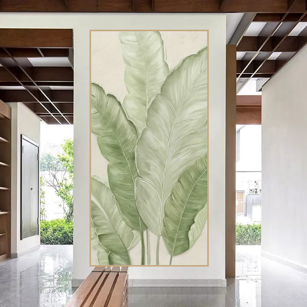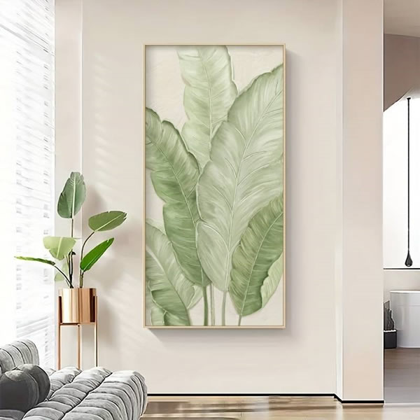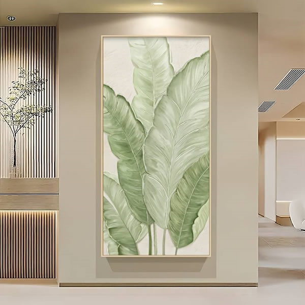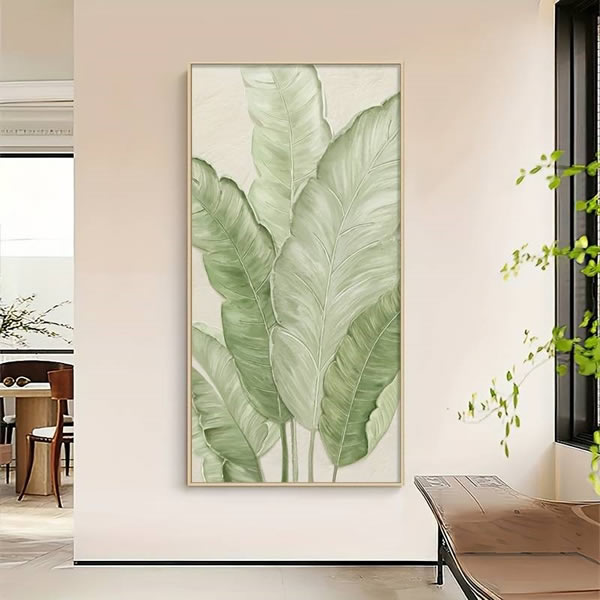 Esta pintura apresenta uma composição serena e elegante de folhas verdes, dispostas de forma harmoniosa contra um fundo neutro. As folhas, desenhadas com detalhes meticulosos, capturam a essência da natureza em sua forma mais pura e simples. Os tons suaves de verde transmitem uma sensação de calma e frescor, evocando a tranquilidade de um jardim ou floresta. A escolha das cores e a técnica delicada usada na pintura destacam a beleza natural das folhas, realçando suas texturas e veias. A simplicidade da imagem convida o observador a uma pausa contemplativa, apreciando a serenidade e a paz que a natureza pode oferecer.