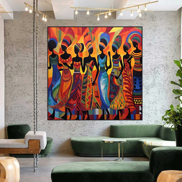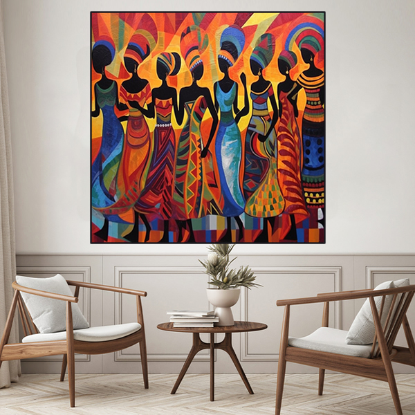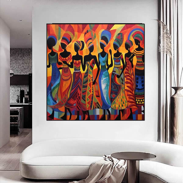 Este impressionante quadro de arte renascentista deco captura a energia vibrante de seus componentes. As figuras femininas estão entrelaçadas, firmes e poderosas, evocando a força da unidade e a ligação de seus laços de amizade. O ambiente peculiar desta obra de arte transmite uma sensação particular de calor e bem-estar.