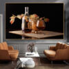 A pintura possui uma bela profundidade, criada pelos desenhos estilizados e pelo uso de sombras. Esta é uma excelente peça para adicionar à sua casa. Esta obra de arte reflete a beleza tranqüila do vinho e oferece um olhar impressionante e detalhado.