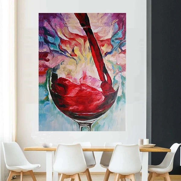Uma obra de arte extraordinária, a arte de vinho com líquido vermelho fluindo oferece um olhar luxuoso e ao mesmo tempo detalhado. Pintada com tons vermelhos, brancos e pretos, a pintura exprime o estilo neo-fauvismo, usando óleo sobre tela.