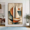 A obra apresenta um jogo envolvente de formas fluidas que parecem se mover continuamente pelo espaço da tela. Curvas amplas e elegantes se entrelaçam como fitas orgânicas, criando a sensação de movimento e transformação constante. Os tons quentes — que variam entre terracota, cobre, caramelo e nuances suaves de verde — evocam elementos da natureza, lembrando o fluxo da lava, as camadas da madeira ou as correntes de vento que moldam paisagens ao longo do tempo. A composição transmite simultaneamente energia e suavidade, como se as formas estivessem em uma dança silenciosa. Cada curva conduz o olhar do observador para a próxima, criando uma experiência visual quase hipnótica. A obra sugere a ideia de continuidade e de ciclos naturais, onde a matéria se transforma e se reorganiza, formando um equilíbrio delicado entre força, movimento e harmonia.