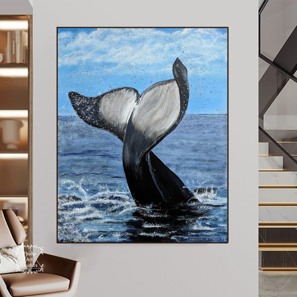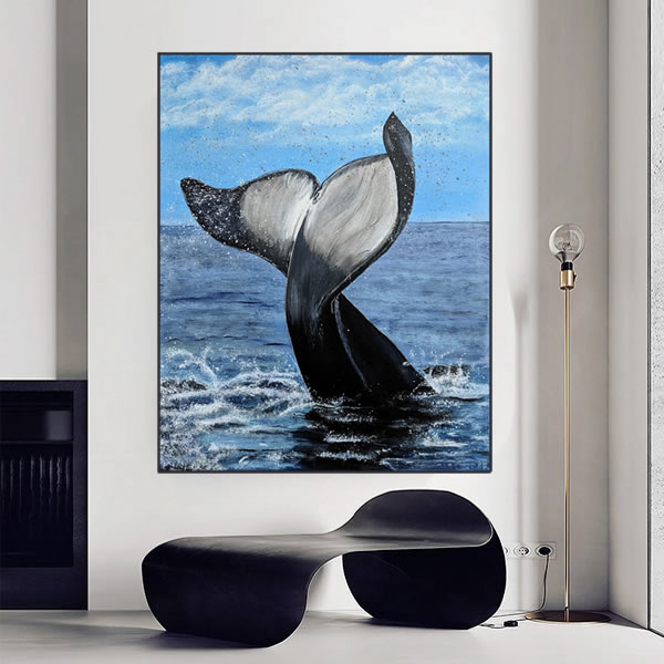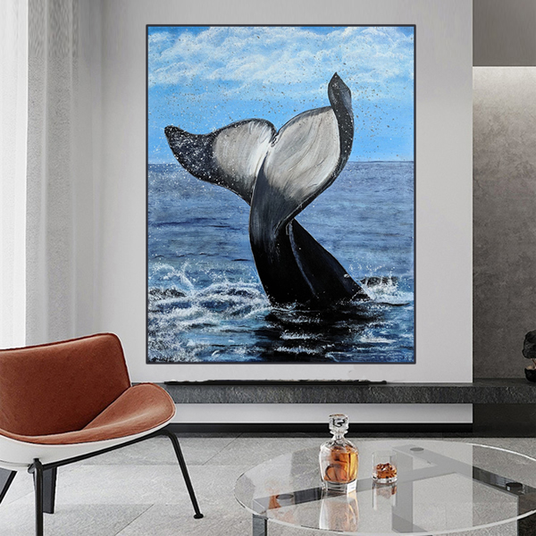 Esta obra de arte eletrizante captura a beleza de um momento de encantamento, uma baleia que se ergue do mar como se dançando. O realismo do movimento e dos detalhes é impressionante, pois a natureza é visível, proporcionando um ambiente acolhedor para o espectador. Esta pintura é uma pintura em óleo sobre tela, pintada com precisão e detalhes impressionantes. Esta arte de um momento de efervescência em meio a natureza é uma adição encantadora à decoração do seu lar ou do seu escritório. Esta obra de arte, com seus detalhes e realismo, proporciona ao espectador o sentimento de estar presente no momento da cena, dentro do oceano, observando a baleia. Esta é uma obra de arte que irá encantar a todos aqueles que desfrutam da beleza da natureza e deseja trazer um pouco desse encantamento para a própria casa.